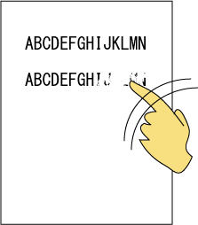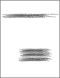 全面ベタや写真を印刷した時に気付きやすい症状です。 感光体ドラムあるいは現像ユニット内部に詰まった異物が原因で起こる場合があります。 |